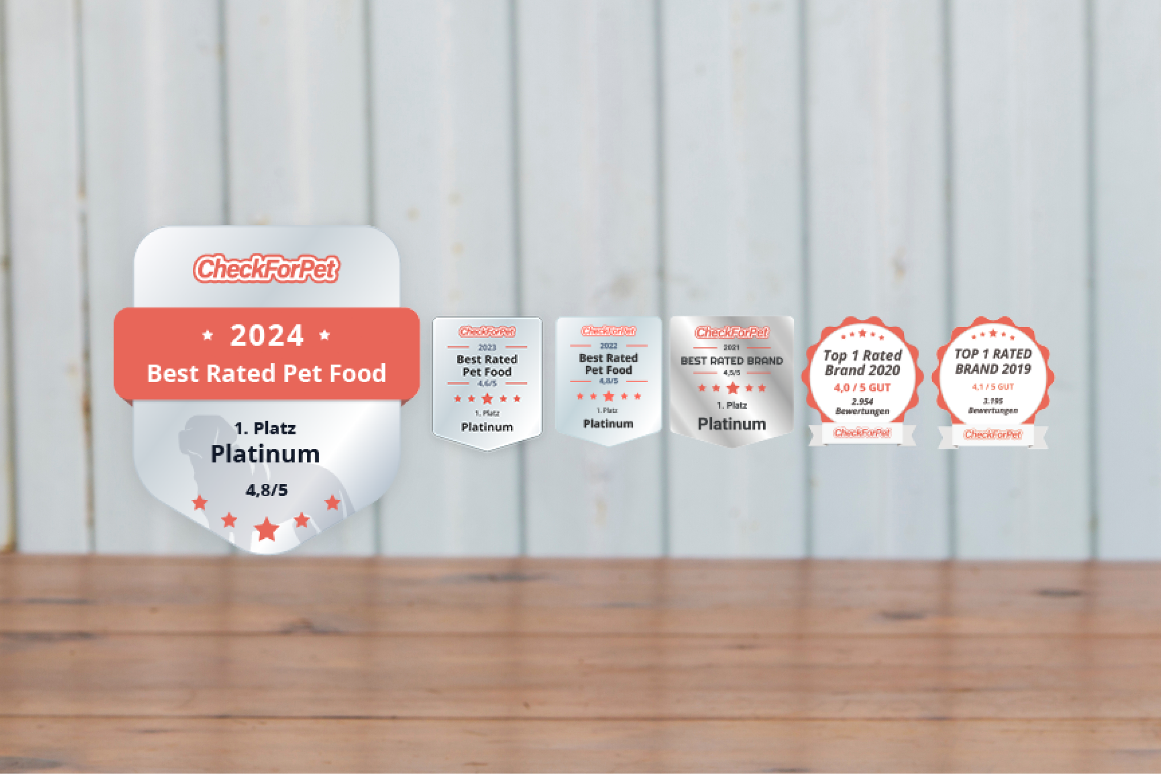 We won the CheckForPet recognition for the 5th consecutive time in the dog food category.